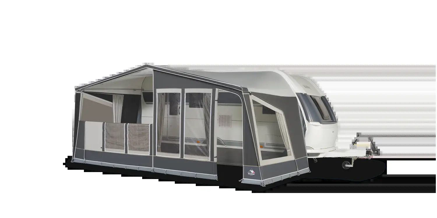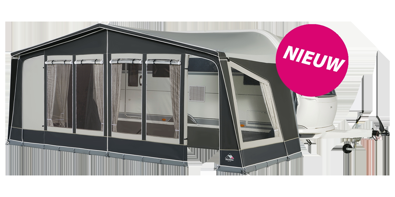 De Multi Nova Trend is de ideale mix van een voortent en luifel. Deze multifunctionele luifel/voortent is gemaakt van topkwaliteit Ten Cate All Season tentdoek. Alle wanden zijn naar wens in- en uitritsbaar en de beide zijwanden zijn voorzien van een fraai gestileerd afsluitbaar gaasvenster. De voorwand heeft twee deuren. Door één deur gesloten te laten, afhankelijk van de plaats van de deur van de caravan, creëert u aan één kant een ruime zithoek. Deze schitterende luifel/voortent wordt standaard geleverd met het unieke, snel opzetbare, aluminium EasyGrip Quick System frame of tegen meerprijs met het nieuwe supersterke lichtgewicht Fibre Tech Plus frame.